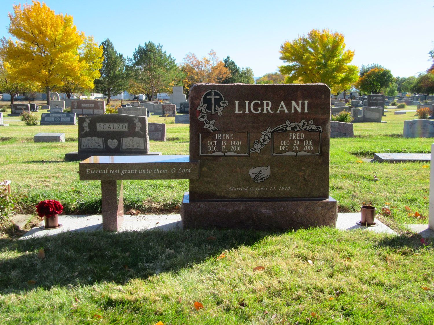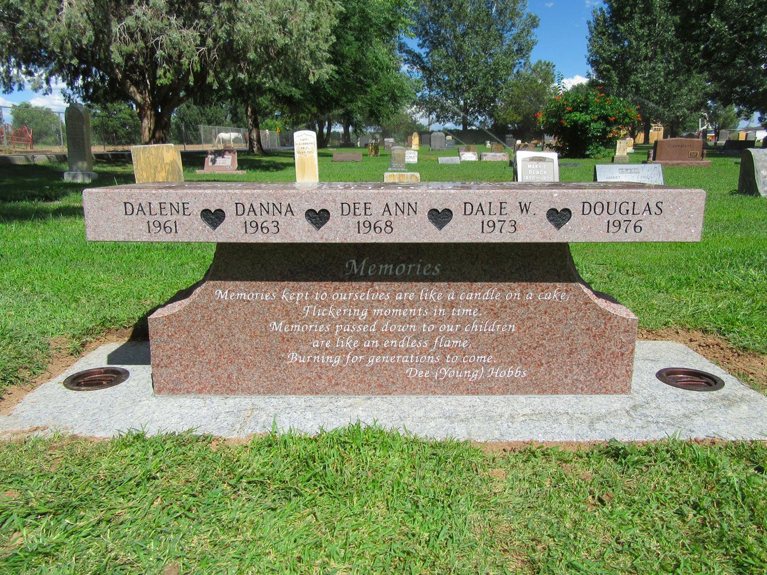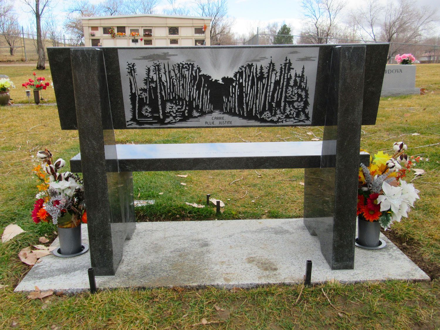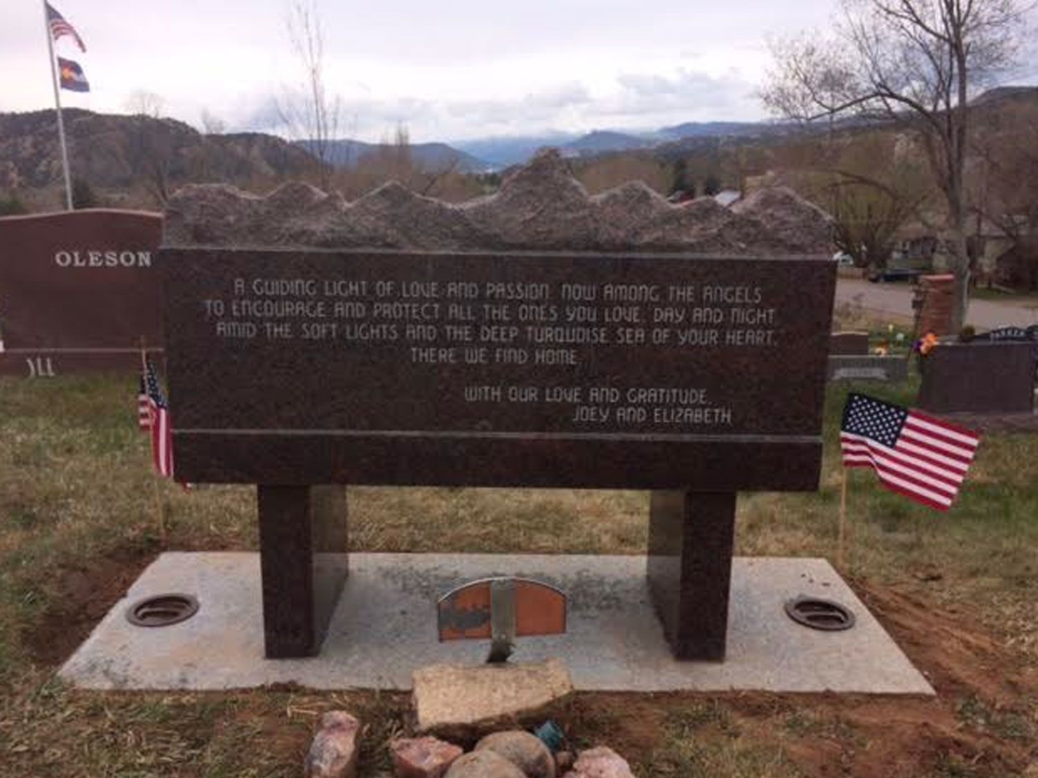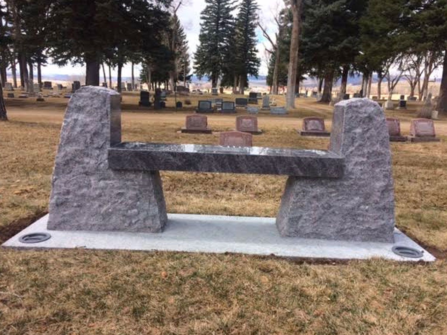 Benches can be customized to hold cremains or be attached to a tablet & base. Benches will go at the head of the grave and can be followed with flat markers if desired. All cemeteries we serve will have specific rules and regulations on the size, style, color and placement of memorials, please reach out so we can discuss what options are available for you to serve you best. We can also produce cremation markers that allow for marking the remains of multiple loved ones. Call us today at 970-242-2020 for a no obligation consultation.