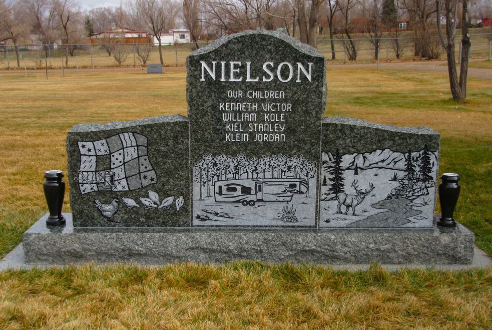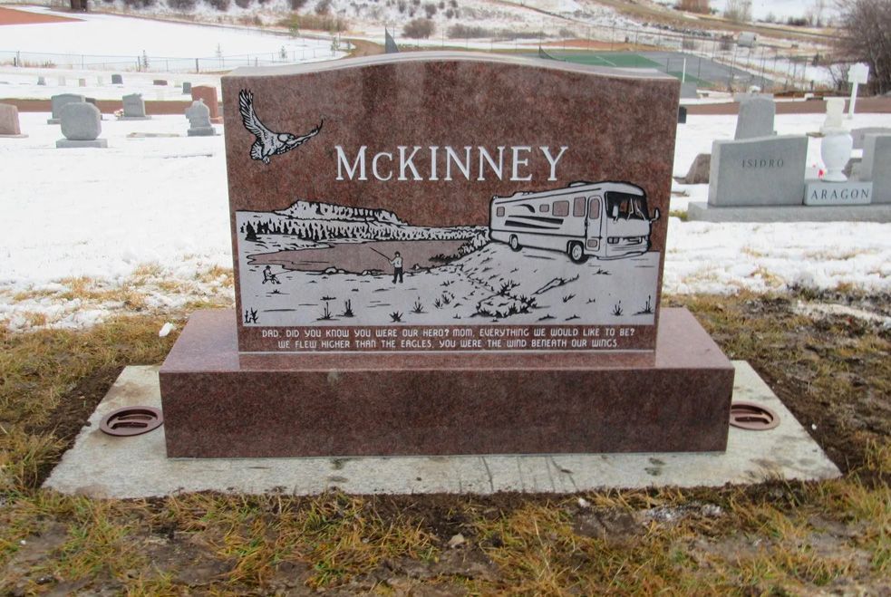 Custom memorials are available in a variety of shapes ranging from boulders, hearts, tear drops and even books or boats. Custom memorials will be an upright option that is placed at the head of the grave and is available in marble or granite. All cemeteries we serve will have specific rules and regulations on the size, style, color and placement of memorials, please reach out so we can discuss what option are available for you to serve you best.