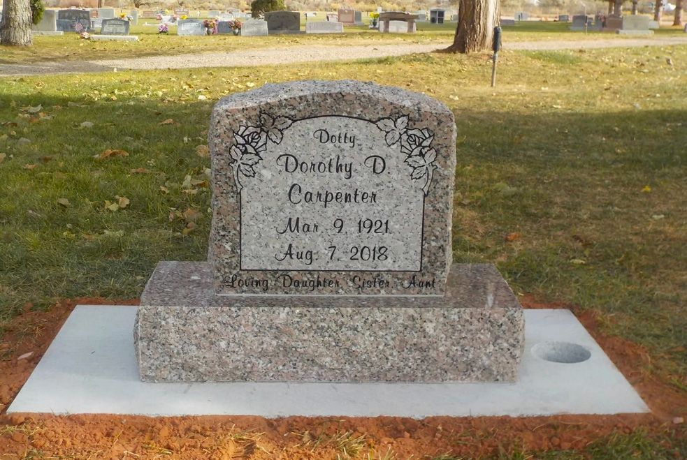 A tablet & base memorial will have room to customize both the front and back of the memorial with design and is available in a variety of sizes for both individuals and companions in marble or granite. All cemeteries we serve will have specific rules and regulations on the size, style, color and placement of memorials, please reach out so we can discuss what options are available for you to serve you best.